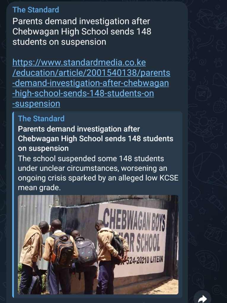 Parents at Chebwagan Boys High School in Litein, Kericho County, are calling for a thorough investigation following the mass suspension of 148 students.