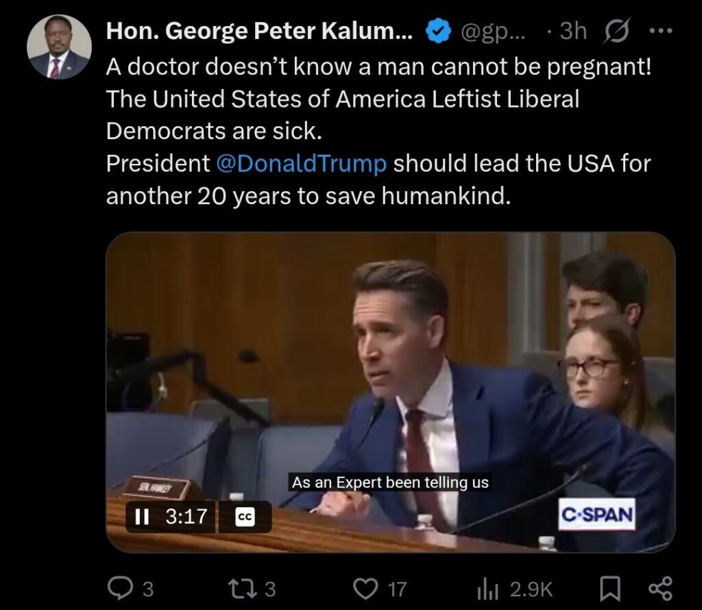Through his official X account, Peter Kaluma who is a popular political leader in Kenya piblicly claimed that Trump should lead USA for the next 20 years.