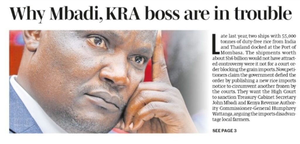 It is said that the matter started last year when two ships with 55,000 tonnes of duty free rice from India and Thailand docked at the port of Mombasa.