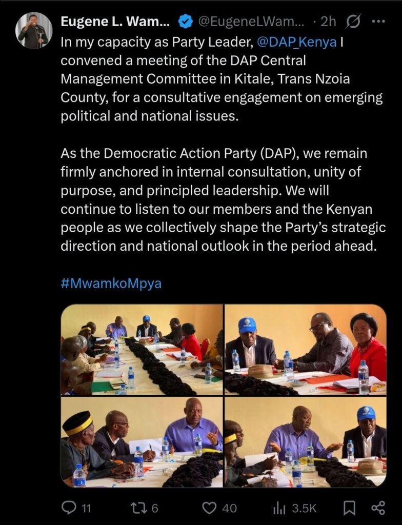DAP-K, which positions itself as a credible national alternative, continues to prioritize internal consultations amid Kenya’s evolving political landscape.